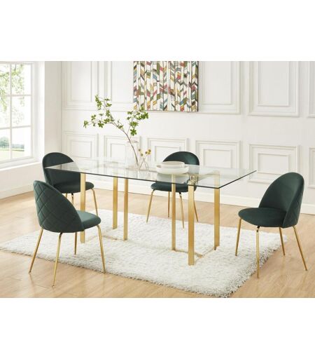 Conjunto de 2 cadeiras MELBOURNE. Revestimento: veludo. Estrutura: metal dourado. Cor: verde. Estilo: charme vintage. Dimensões: C50xL55xA77 cm. Altura do assento: 47 cm. Uma decoração de interior com glamour e notas retro com a cadeira MELBOURNE! ...