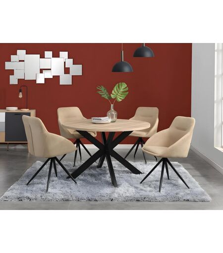 Mesa de jantar redonda TILKI - 4 lugares - Estrutura: MDF e metal - Cor: carvalho e preto - Estilo: design - Dimensões: C120 x L120 x A77,5 cm - Partilhe boas refeições em torno da mesa redonda TILKI! ...