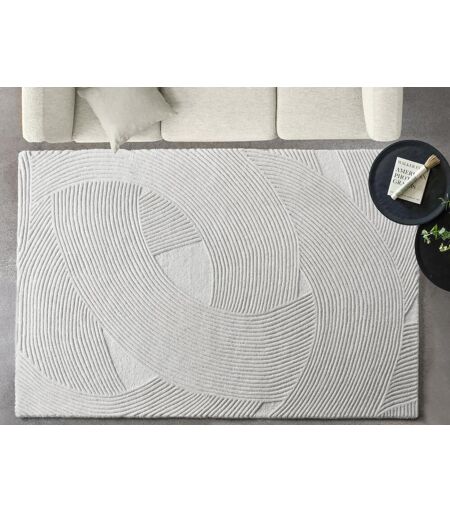Tapete com relevo e padrões em arcos de lã 100% feito à mão 160x230 cm, 2200 g/m2, marfim BASSAM. Renda-se ao encanto das curvas dos tapetes da coleção BASSAM! ...