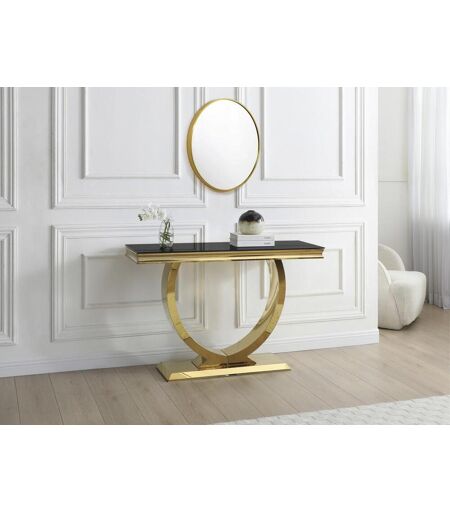 Consola ROWAN vidro temperado e aço inoxidável dourado e preto, estilo design. Dimensões: C120 x L40 x A78 cm. Sublime a sua entrada com a consola ROWAN, a joia assinada por Pascal Morabito! ...