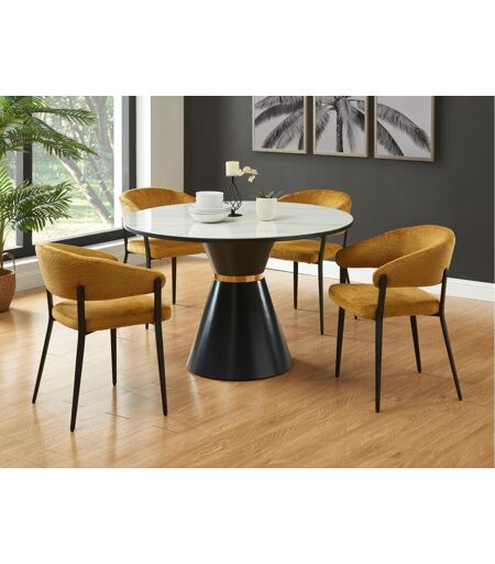 Vente-unique Conjunto de 6 cadeiras com apoios de braços em tecido e metal preto, amarelo mostarda - AVRELA