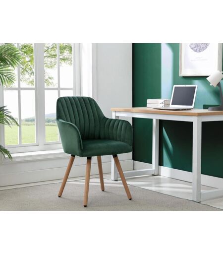 Conjunto de 2 cadeiras com apoios de braços ELEANA - Veludo e metal efeito madeira de faia - Cor: verde escuro - Estilo: charme vintage - Dimensões: C56 x L58 x A85 cm - Altura do assento: 48 cm - Coleção ELEANA: um visual retro e acabamentos cuidados! ...