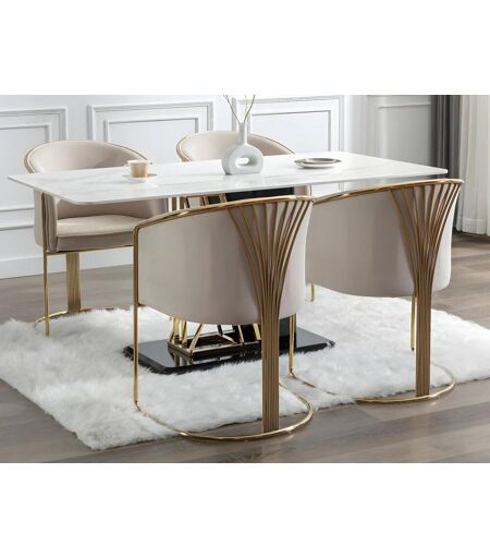 Conjunto de 2 cadeiras com apoios de braços em veludo e metal bege e dourado - JOSETHE de Pascal Morabito