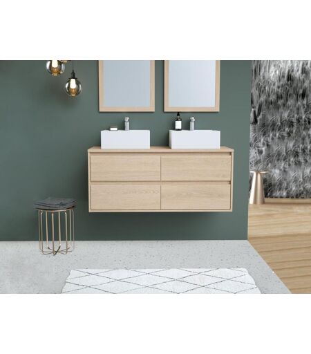 Vente-unique Móvel de casa de banho suspenso com lavatório duplo de pousar, folha de carvalho, 120 cm - MILIPAM