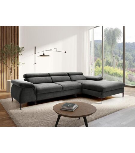 Sofá de canto direito convertível veludo antracite. Made for Design. Apoio de cabeça com múltiplas posições e espaço de arrumação. Dim. C288xL182xA94 cm. SEPINA de Pascal Morabito ...