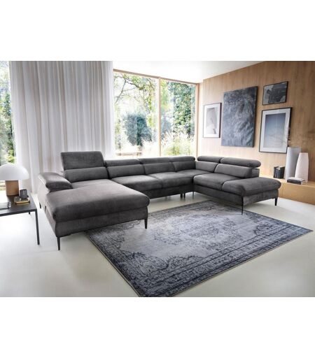 Grande sofá de canto esquerdo panorâmico convertível veludo cinza-antracite - SEPINA de Pascal Morabito