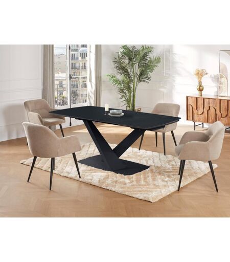 Vente-unique Mesa de jantar extensível de 6 a 10 lugares em vidro temperado, cerâmica e metal, efeito mármore preto - MALATA de Pascal MORABITO