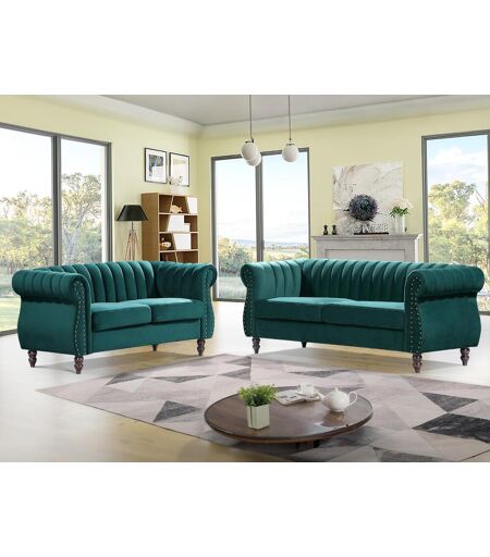 Vente-unique Sofás Chesterfield 3 lugares e 2 lugares veludo verde esmeralda - TRUMBO