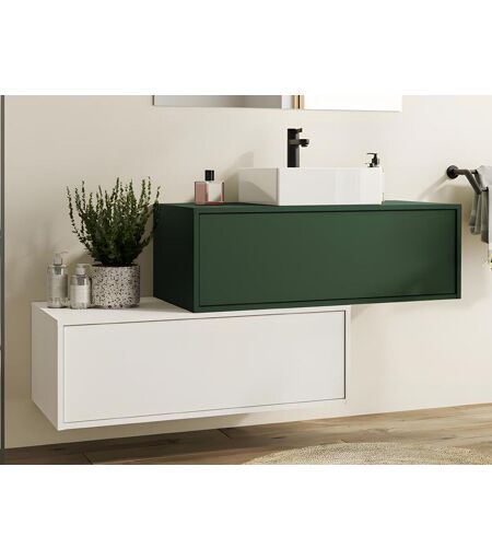 Vente-unique Móvel de casa de banho suspenso verde e branco lavatório individual e duas gavetas 94 cm - TEANA II