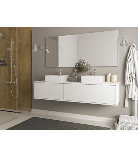 Vente-unique Móvel de casa de banho suspenso branco com lavatório duplo C150 cm - ISAURE II