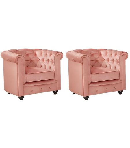 Vente-unique Lote de 2 cadeirões CHESTERFIELD - Veludo rosa pastel