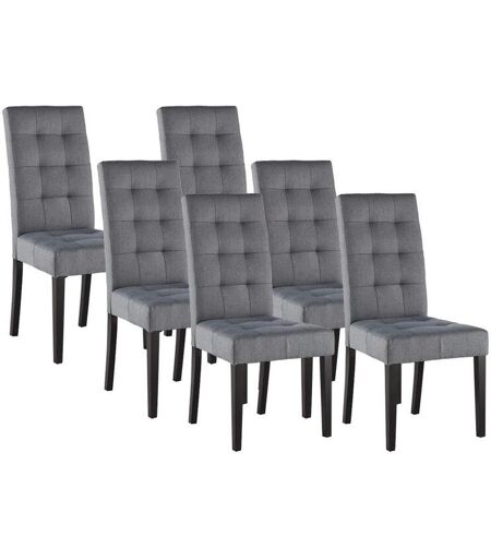 Conjunto de 6 cadeiras VILLOSA - Estrutura: Pinho maciço - Pés: Madeira de borracheira maciça efeito wengé - Revestimento: Tecido - Cor: Cinzento - Altura do assento: 47 cm - Profundidade do assento: 43 cm - Dimensões: C48 x L61 x A100 cm ...