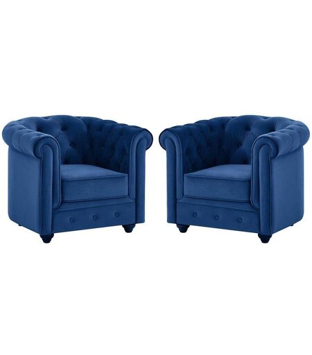 Vente-unique Conjunto de 2 poltronas CHESTERFIELD - Veludo azul-real