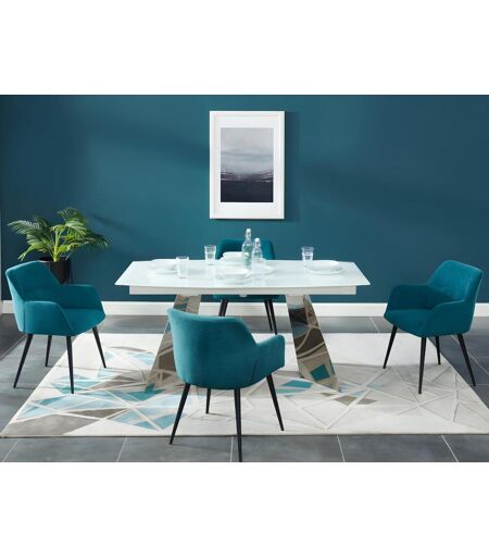 Conjunto de 6 cadeiras HEKA. Com apoios de braços. Assento: tecido efeito veludo. Estrutura: contraplacado. Base: metal preto. Cor: azul. Estilo: charme. Dim: C59,5xL61xA78 cm. Assento: A46,5 cm. Desfrute de refeições confortáveis graças à cadeira HEKA ...