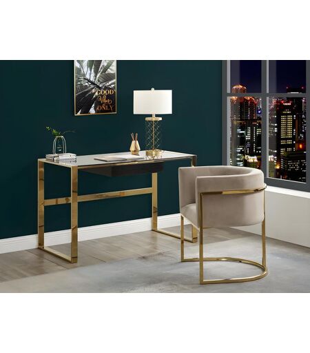 Conjunto de 2 cadeiras com apoios de braços PERIA de Pascal Morabito - Material: veludo e metal - Cor: bege e dourado - Estilo: art déco - Dimensões: C60 x L56,5 x A76 cm - Altura do assento: 47 cm - Escolha a elegância e o conforto de um estilo art-déco com as cadeiras PERIA de Pascal Morabito ...