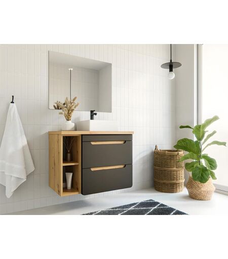 Vente-unique Móvel de casa de banho suspenso lavatório simples e nichos cor natural e antracite de 80 cm - ARUBA