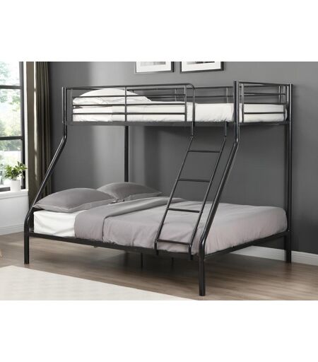 Beliche 90 x 190 e 140 x 190 cm ELEVATIO IV com sommiers e colchões. Estrutura de metal cor preta. Dimensões: C199 x L147 x A163 cm. Não hesite mais entre o design e o ganho de espaço com o beliche ELEVATIO IV! ...