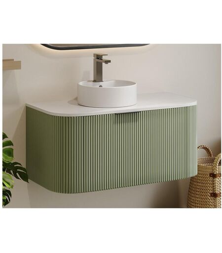 Vente-unique Móvel de casa de banho suspenso estriado com lavatório de pousar verde fosco 100 cm - LOMERI