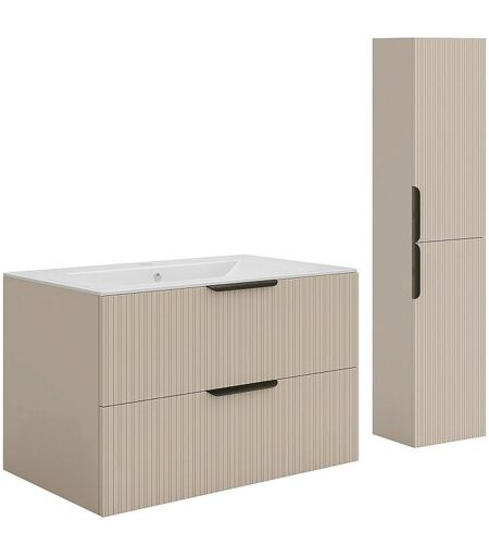 Móvel de casa de banho suspenso estriado com vasque de encastrar e coluna - Modelo simples vasque - 2 gavetas com sistema soft close - Cor bege / cashemira - Dimensões: L80 x H50 x P45.5 cm - DALIKO ...