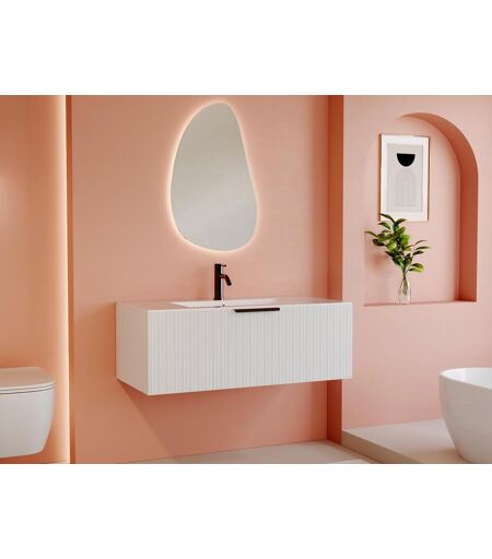 Móvel de casa de banho suspenso estriado com lavatório de encastrar - 1 gaveta com sistema de fechamento suave - Cor branco - Dimensões: L100 x A35 x P45.5 cm - PALIRO ...
