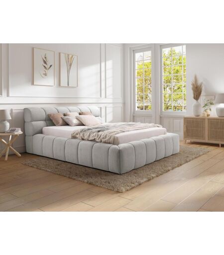 Cama com espaço de arrumação 160x200 cm tecido cinza-claro + colchão - FORVIK de Pascal Morabito