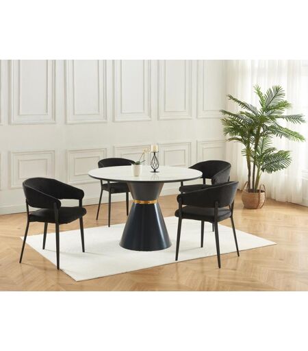 Conjunto de 6 cadeiras com apoios de braço AVRELA tecido e metal preto, estilo contemporâneo. Dimensões: C56 x L55 x A77 cm. Altura do assento: 48,5 cm. Com a cadeira AVRELA, sucumba a uma decoração interior chique! ...