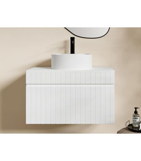 Vente-unique Móvel suspenso estriado de casa de banho branco com lavatório redondo de pousar 80 cm - SATARA