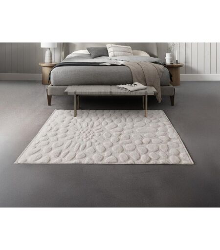 Vente-unique Tapete em relevo 100% lã tufada à mão efeito seixos 200x290 cm marfim - ORABEL