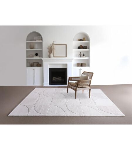 Vente-unique Tapete em relevo 100% lã tufada à mão motivo geométrico 200x290 cm marfim - MILUNA