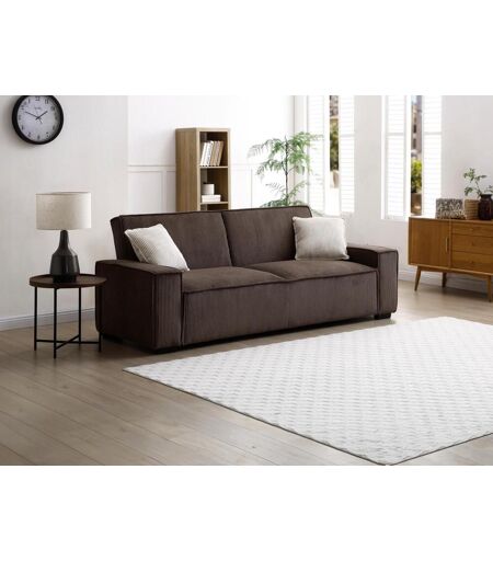 Sofá de 3 lugares convertível veludo canelado castanho. Cama ocasional. Suavidade do veludo canelado. Almofadas adicionais. Dim.: C230 x L94 x A87 cm - SEKOTA ...