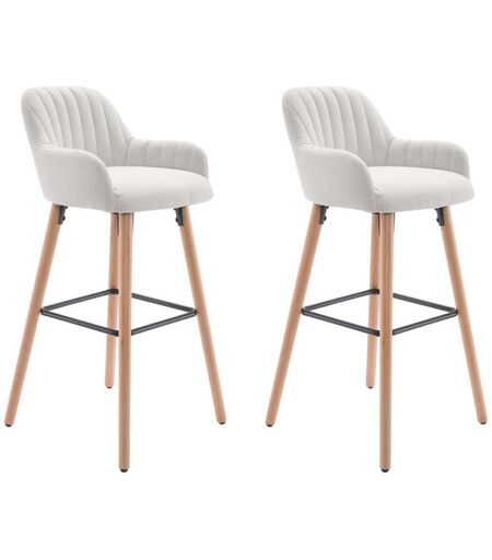 Vente-unique Conjunto de 2 bancos altos tecido e pernas em madeira de faia cor creme - ELEANA
