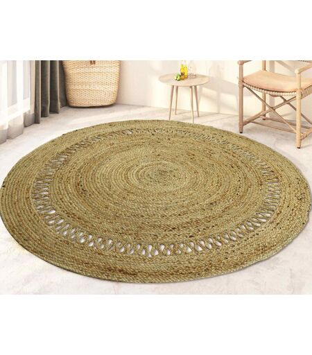 Vente-unique Tapete redondo perfurado 100% juta D.200 cm cor natural - ALYA