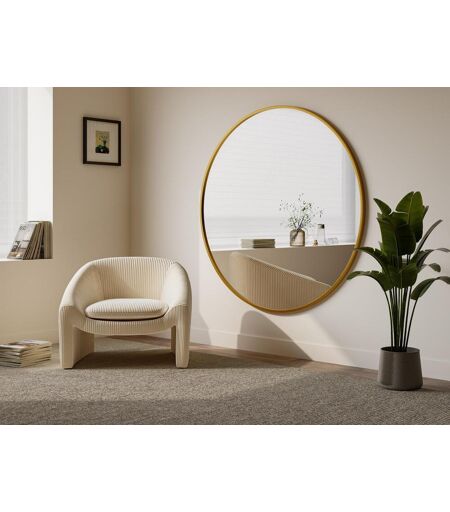 Espelho grande de parede redondo metal D150 cm dourado RONDIA. Espelho contemporâneo metal e costas MDF, 3 ganchos nas costas. Espelho design dourado em metal. ...