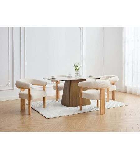 Cadeira com apoios de braço em tecido bouclé e madeira de hévea branco e natural - LIVELIA de Pascal MORABITO