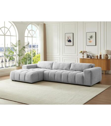 Vente-unique Sofá de canto esquerdo em tecido texturizado cinza - LOPONZA
