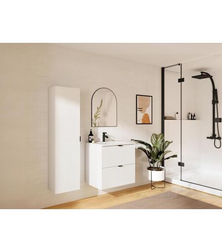 Vente-unique Coluna de casa de banho suspensa estriada branco fosco A140 cm - ZEVINI
