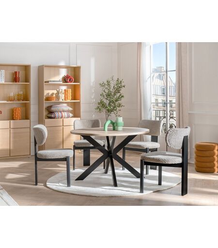 Vente-unique Conjunto de 2 cadeiras em tecido bouclé e madeira de hévea taupe e preto - WILANA