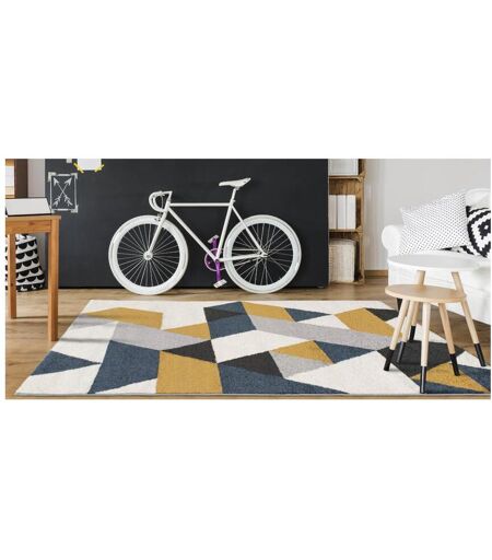 Vente-unique Tapete geométrico 160 x 230 cm em polipropileno Amarelo, cinza e azul estilo escandinavo - GEOMIE