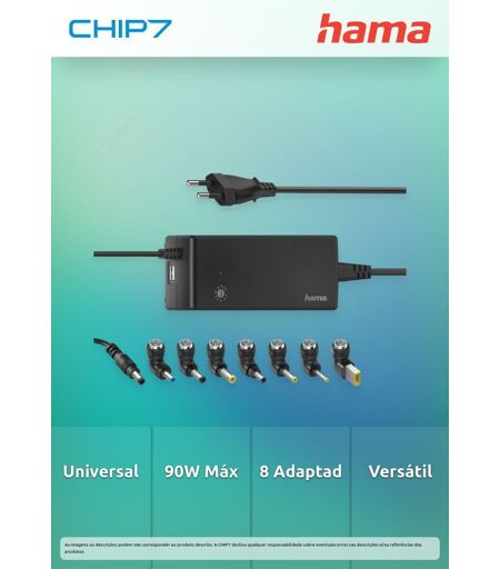 Hama 00200004. Tipo de carregador: Interior, Tipo de fonte de alimentação: AC, Compatibilidade do carregador: Computador portátil. Tensão de entrada: 100 - 240 V, Tensão de saída máxima: 22 V. Cor do produto: Preto ...