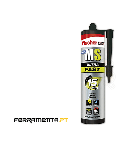Cola e Veda MS SELLANTE MS Ultra Fast Fischer 552136 Secagem rápida em 15 minutos. Alta resistência. Sem solventes, isocianatos ou silicones. Ampla gama de adesão. Sem odor. Compatível com pinturas. Muito boas propriedades de vedação. Resistente a choques e vibrações. Vantagens< ...