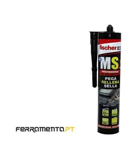 Cola e Veda MS PROFESIONAL Preto 290ml Fischer 540330 Vedante adesivo monocomponente de alto desempenho mecânico, projetado para vedação e colagem de diversos materiais. Tem uma excelente resistência à descoloração devido à exposição a raios U.V. Não contém solventes, silicone ou isocianatos e é inodoro. Aplicável em ...