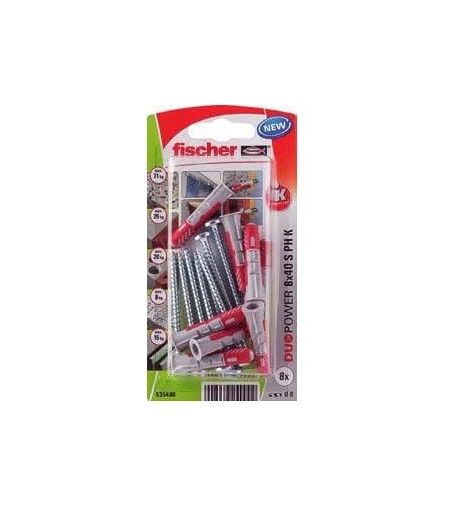 Blister Buchas 5x25 & Parafusos 4x35 (18UN) Fischer 534996 DUOPOWER da fischer é uma bucha inteligente de 2 componentes com três princípios de funcionamento. A bucha universal inteligente é ideal para fixações em todos os materiais de construção. Permite aplicações muito versáteis com apenas uma bucha. A DUOPOWER adapta-se natu ...