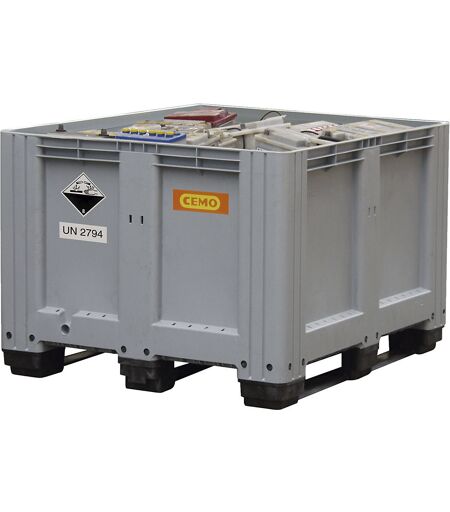 CEMO Caixa de armazenamento e transporte para baterias usadas, em PE, volume 610 l, com 3 patins