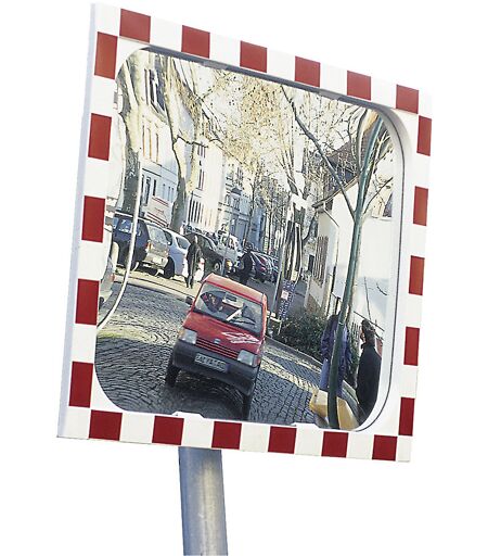 Moravia Espelho de trânsito, espelho em vidro Sekurit, caixilho em plástico, vermelho refletor, dimensões do espelho LxA 1000 x 800 mm