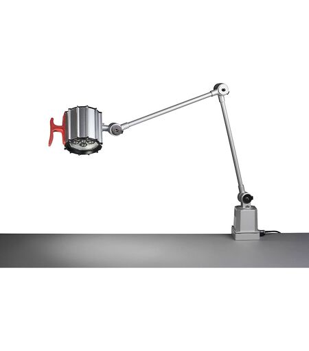 Candeeiro articulado LED para máquinas IP65, 12 W, rotativo/inclinável, 6000 K, 1260 lúmenes. Fornecimento = montado. Potência = 12 watt. Lâmpada = LED. Tensão de conexão = 100 - 240 V / 50 - 60 Hz. Cor = cinzento prateado. Tipo de proteção = IP65. Consumo de energia = 13.2 kWh/1000h. Cabo de conexão = 1.5 m. Cabeça do candeeiro = inclinável, rotativo. Diâmetro da cabeça do candeeiro = 130 mm. Versão do balastro eletrónico = controlador LED integrado. Corrente para iluminação = 1260 Lúmen. Altura da cabeça da lâmpada = 120 mm. Potência de iluminação máx. = 8000 lux. Peso = 2.9 kg. Cor da luz = branco luz do dia. Temperatura da cor = 6000 K. Tipo de proteção IP65. Versão robusta com base para aparafusar integrada para condições ambientais adversas. Luz forte e concentrada. Proteção contra pó e salpicos de água IP65. Boa dissipação de calor graças à cabeça do candeeiro com nervuras em perfil de alumínio prensado por extrusão. Sem aquecimento do vidro de proteção e, portanto, não queima os produtos de refrigeração e lubrificação. Robusto contra as vibrações. Pode ser imediatamente ligado à tensão de rede. Braço articulado em tubo de aço, 5 eixos giratórios, articulações e caixa do transformador em alumínio moldado sob pressão, pega em plástico antichoque (reforçado a fibra de vidro). Comprimento do braço 400 + 400 mm. Interruptor na cabeça do candeeiro. Conversor de LED integrado no aparelho (CC), ficha de contacto de segurança (CEE 7/7), ligação à rede elétrica com cabo de borracha de 1,5 m, base para aparafusar com 90 x 90 mm. Incluindo 6 LED de elevada potência de 2 W, branco frio. Todos os candeeiros estão sujeitos a adaptações técnicas devido aos regulamentos comunitários 2019/2020/UE e 2019/2015/UE. Para mais dados, por favor visite a nossa loja online. Este candeeiro contém lâmpadas LED integradas. As lâmpadas não podem ser substituídas. ...