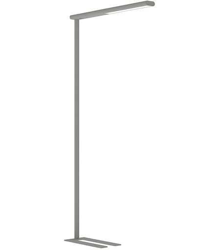 Candeeiro de pé LED MAULjet, altura 1950 mm, regulação contínua da intensidade, cinza alumínio RAL 9006. Fornecimento = desmontado em peças. Pé do candeeiro = pé de apoio. Classe de eficiência energética = E (espectro A a G), D (espectro A a G). Consumo de energia = 21 kWh/1000h. Lâmpada = LED. Cor da luz = branco neutro. Temperatura da cor = 4000 K. Índice da reprodução de cor = 82. Potência de iluminação máx. = 1520 lux. Corrente para iluminação = 4450 Lúmen. Tensão de conexão = 200 - 240 V. Cabo de conexão = 1.8 m. Vida útil = 50000 horas. Tipo de proteção = ficha de contacto de segurança I. Cor = cinza alumínio RAL 9006. Característica = com possibilidade de regulação da intensidade. Material = alumínio, aço. Altura = 1950 mm. Largura = 225 mm. Comprimento = 950 mm. Peso = 7.22 kg. Regulador contínuo da intensidade luminosa de acordo com a atividade e as necessidades individuais. Potente luz direta sobre a superfície de trabalho e indireta para iluminar o local. Emissão de luz aprox. 65% para cima e aprox. 35% para baixo. Cabeça do candeeiro longa em alumínio para luz sem sombras a partir de cima, redução suave da luz através do material difusor. Sem ruídos de fundo incomodativos e sem cintilação, arranque imediato da lâmpada sem piscar. Sem perturbações: placa de base recortada que pode ser posicionada à volta de uma perna da mesa. Práticos: difusor para projeção de sombra reduzida. Redução do encandeamento para UGR < 19, de forma a proporcionar uma visão sem fadiga. Coluna estável com cabeça do candeeiro longa fechada, em alumínio. Base estável em aço com sapatas, LxP 500 x 225 mm. Interruptor na cabeça do candeeiro. Intensidade luminosa para cima: 1520 Lux a uma distância de 85 cm, 920 Lux a uma distância de 110 cm. Intensidade luminosa para baixo: 1280 Lux a uma distância de 85 cm, 780 Lux a uma distância de 110 cm. Feixe luminoso útil por fonte de luz 2617 Lumen/3218 Lumen. Possibilidade de substituição da fonte de luz e do aparelho de controlo por um eletricista qualificado. ...