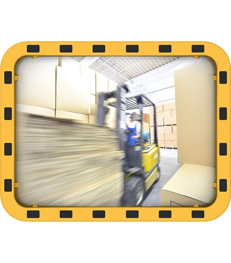 Espelho industrial, retangular, AxLxP 800 x 1000 x 50 mm. Fornecimento = desmontado em peças. Altura = 800 mm. Largura = 1000 mm. Profundidade = 50 mm. Local de utilização = para o interior. Forma = retangular. Ângulo de visão = 110 °. Versão do caixilho = com marcação de aviso em amarelo/preto. Material do caixilho = poliestireno. Resistência a temperaturas = até +60 °C. Distância máx. de observação = 22 m. Distância mín. de observação = 27 m. Comprimento do braço de parede = 140 mm. Peso = 8.5 kg. Versão = com suporte universal para montagem na parede e no poste. Tipo de produto = espelhos industriais. Imagem refletida brilhante para uma representação clara. Suporte universal para montagem na parede e nos postes (50 - 85 mm). Armação notável. Descubra o espelho industrial com suporte universal - a solução ideal para uma maior segurança em ambientes industriais. Este espelho de segurança de alta qualidade oferece uma imagem refletida brilhante com uma representação clara e, graças ao seu suporte universal, pode ser utilizado de forma flexível em suportes para montagem em parede e poste (50 - 85 mm). A armação amarela e preta apelativa garante a máxima visibilidade e segurança. A superfície do espelho em PMMA robusto é resistente aos raios UV e às intempéries, garantindo uma longa vida útil. A instalação simples permite uma utilização rápida e descomplicada. Perfeito para segurança em cruzamentos ou áreas encobertas em contexto industrial para evitar acidentes rodoviários e salvaguardar as operações. Suporte universal incluído. ...