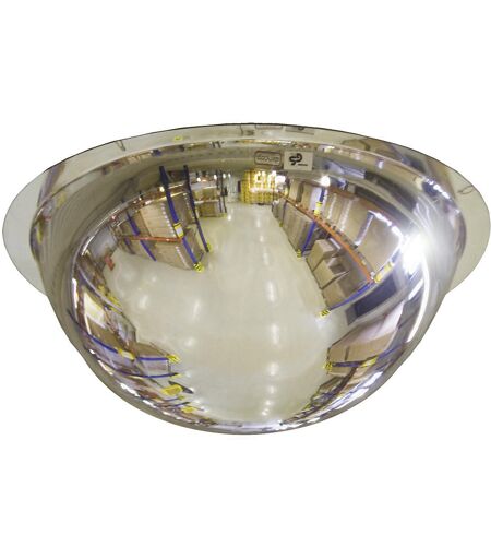 Espelho panorâmico, ângulo de visão 360°, Ø 600 mm. Fornecimento = montado. Altura = 600 mm. Largura = 600 mm. Local de utilização = para o interior. Forma = meia esfera. Ângulo de visão = 360 °. Diâmetro = 600 mm. Distância máx. de observação = 20 m. Distância mín. de observação = 15 m. Peso = 1.2 kg. Tipo de produto = espelhos panorâmicos. Solução eficiente para áreas com pouca visibilidade. Maior segurança em espaços mais apertados. Certificação TÜV e GS. O espelho de cúpula é uma solução eficiente e compacta para melhorar a segurança no trabalho. Com a sua imagem espelhada brilhante, é ideal para utilização na indústria, em oficinas e armazéns. Graças ao seu ângulo de visão, este espelho panorâmico proporciona uma excelente panorâmica e ajuda a aumentar a segurança no local de trabalho. No comércio, funciona também como um dissuasor para potenciais ladrões. O espelho é certificado pela TÜV, o que confirma a sua elevada qualidade e segurança. O espelho pode ser aparafusado diretamente à parede ou ao teto (os orifícios são pré-perfurados no rebordo do espelho). 2 anos de garantia. Meia esfera com conjunto de montagem para pendurar. Distância do teto até ao espelho 900 mm. Comprimento por corrente 1000 mm (fixada em 4 correntes). ...