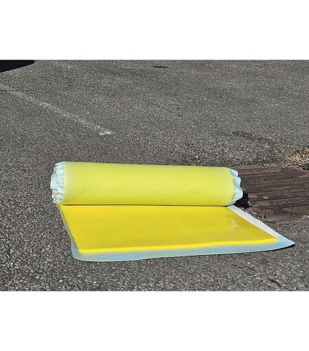 Esteira de vedação flexível para calhas, reutilizável, incl. caixa de transporte/armazenamento, CxLxA 2000 x 1000 x 8 mm. Versão = universal. Comprimento = 2000 mm. Largura = 1000 mm. Altura = 8 mm. Material = poliuretano. Situação = prevenção de fugas, reação a fugas (emergência). Característica = desviável, limitável, coletável. Tipo de fuga = fugas superficiais, fuga gota a gota, derramamento. Esforço = muito grande, transitável. Frequência de utilização = várias vezes. Local de utilização = para o interior e exterior. Cor = amarelo. Tipo de produto = vedações flexíveis. Proteção contra substâncias perigosas derramadas - vedação rápida das calhas de escoamento. Resistente a vários químicos, óleos e líquidos aquosos. Robusta e reutilizável - basta limpar com água e sabão. Inclui caixa de transporte e armazenamento amarela. Plástico especial (poliuretano) com ótima capacidade de aderência ao solo, flexível e estanque. Vedação temporária em caso de emergência e para a prevenção. Esteira de vedação retangular e reutilizável para calhas de escoamento longas em plástico especial (poliuretano) lavável. Ótima capacidade de aderência ao solo, flexível e estanque. As dimensões das esteiras estão adaptadas ao comprimento e à largura das calhas de escoamento. Inclui caixa de transporte e armazenamento prática em amarelo. As esteiras de vedação para canais são utilizadas onde existe o perigo das substâncias perigosas entrarem no sistema de esgoto através de calhas de escoamento. As esteiras de vedação para calhas podem ser limpas com detergente após a utilização e, assim, novamente utilizadas para o próximo caso de emergência ou de prevenção. A parte inferior é autocolante e estanque. A parte superior é fabricada numa camada de poliéster-silicone que garante mais estabilidade e resistência à rutura. Esta está equipada com pegas para um manuseamento simples. A esteira é resistente às intempéries, mesmo em caso de incidência solar, pois não são utilizados plastificantes. Atenção: outros tamanhos - também são possíveis tamanhos especiais específicos do cliente - a pedido! ...