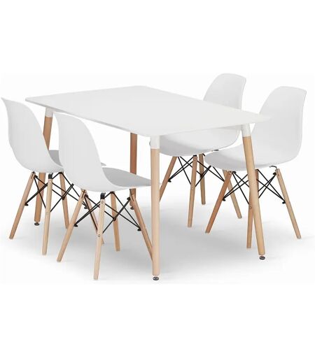 Conjunto de Jantar Valora Mesa Branca YURO 120x80 + 4 Cadeiras Brancas OSAKA